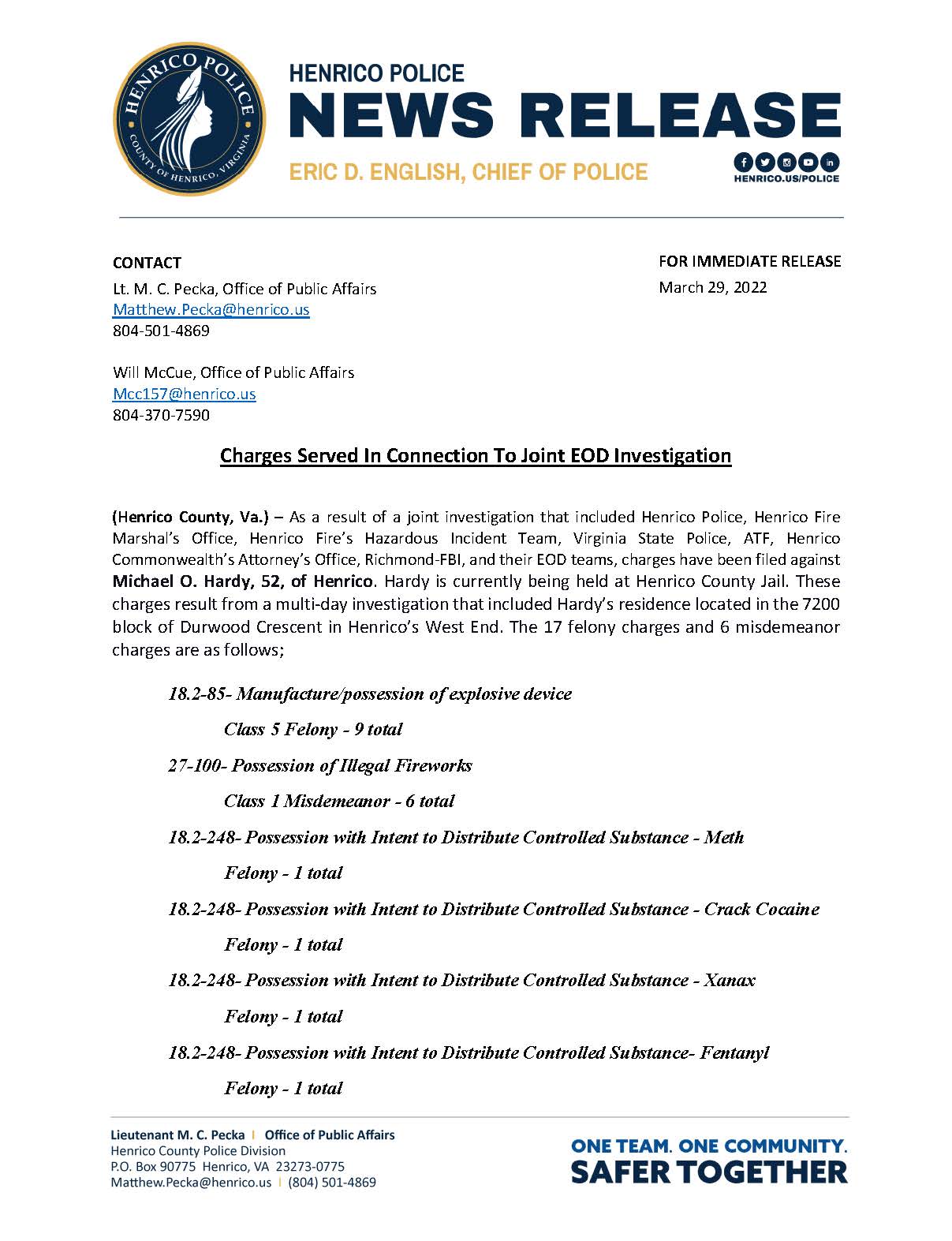 Henrico Police On Twitter As A Result Of A Joint Investigation That Included Assistance From Multiple Agencies Charges Have Been Served To Michael O Hardy 52 Of Henrico Va The Press Release